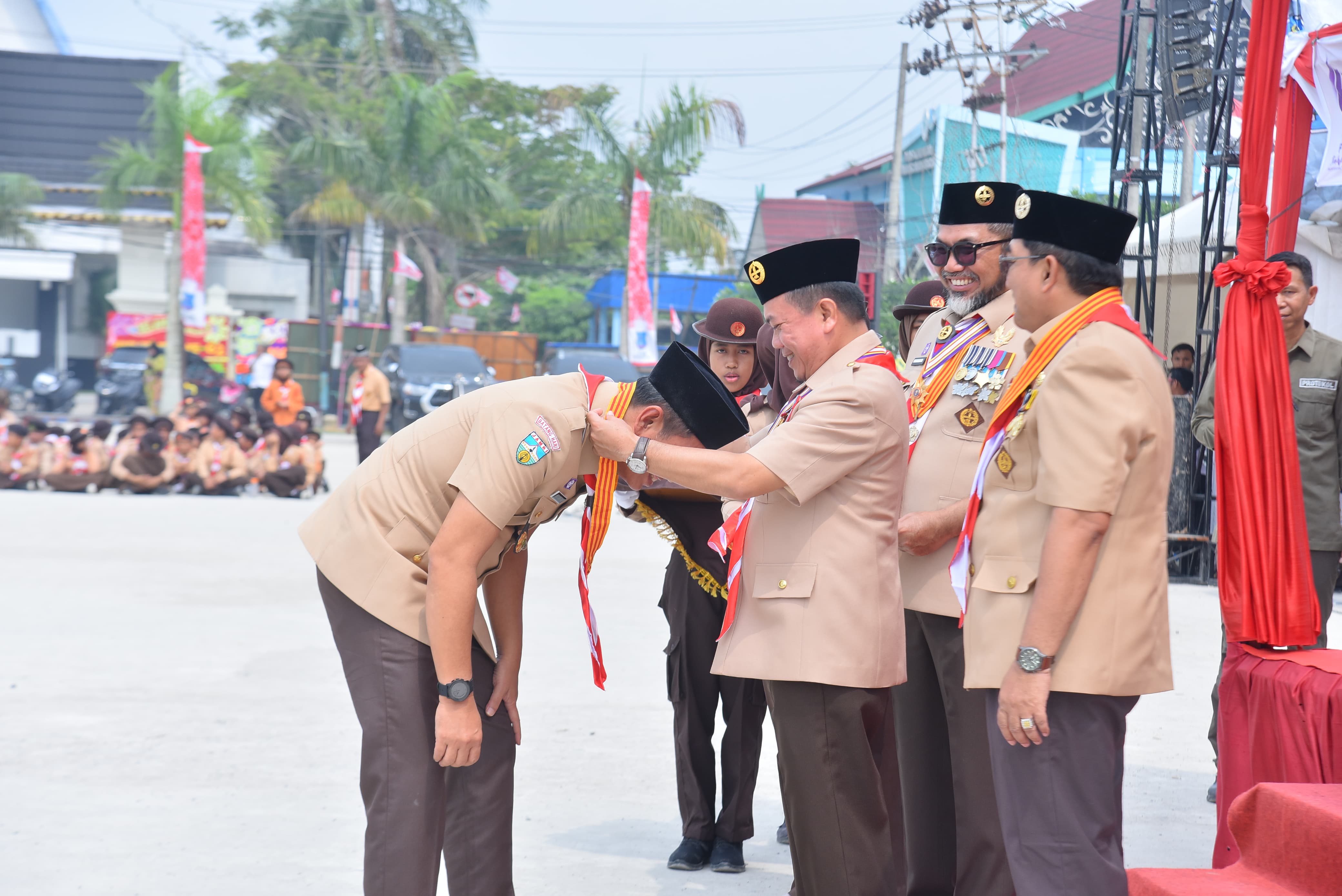 TANJAB BARAT. SJBNEWS.CO.ID- Acara puncak peringatan hari pramuka ke 62 kali ini selaku Pembina Upacara Gubernur Jambi dr. H.Alharis Selaku Ketua Majelis Pembimbing Gerakan Pramuka.