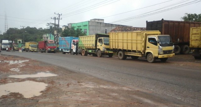 Jumlah itu berasal dari setengah total truk yang berjumlah 9.300-an yang membuat macet jalan umum Jambi selama ini.