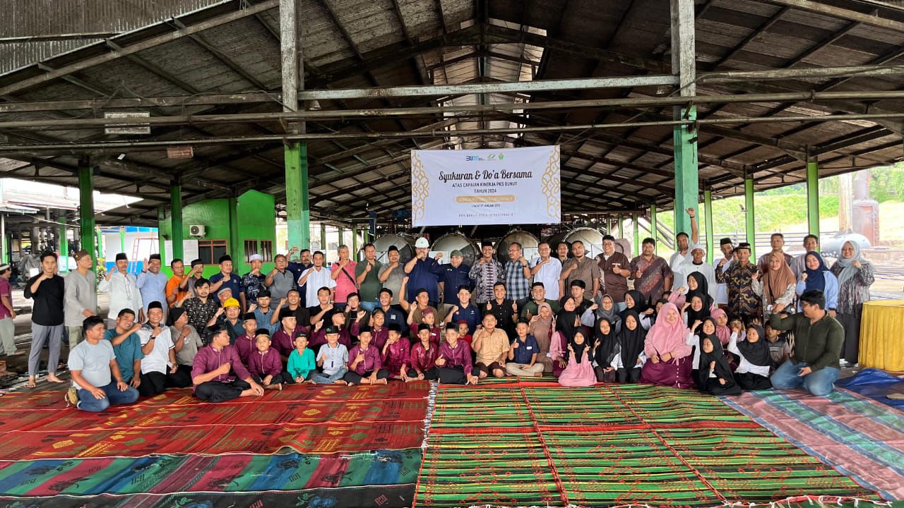 JAMBI, SJBNEWS.CO.ID - Manajemen PT Perkebunan Nusantara (PTPN) IV Regional 4 Jambi, menggelar syukuran pencapaian kinerja melampaui target Pabrik Sungai Bahar (PSB) II Group selama 2024 digelar di PSB II Bunut kecamatan Sungai Bahar kabupaten Muaro Jambi. Rasa syukur ini, digelar manajemen dengan mengajak 43 anak yatim piatu yang berada di kecamatan Sungai Bahar.