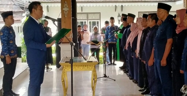 Bupati Batang Hari Muhammad Fadhil Arief Melantik dan Mengukuhkan Penyesuaian Waktu Masa Jabatan Anggota BPD Se-Kabupaten Batang Hari dari empat kecamatan yakni Kecamatan Muara Tembesi, Bajubang, Maro Sebo Ilir, Maro Sebo Ulu.