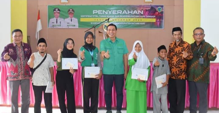 Selain pemberian beasiswa Batanghari Tangguh, Bupati juga menyerahkan sertifikat tanah program Pendaftaran Tanah Sistematis Lengkap (PTSL) dengan rincian tanah wakaf sebanyak lima persil dan retribusi tanah 362 persil dan Penyerahan Reward kepada Purna Bakti Guru di kecamatan pemayung. (*)