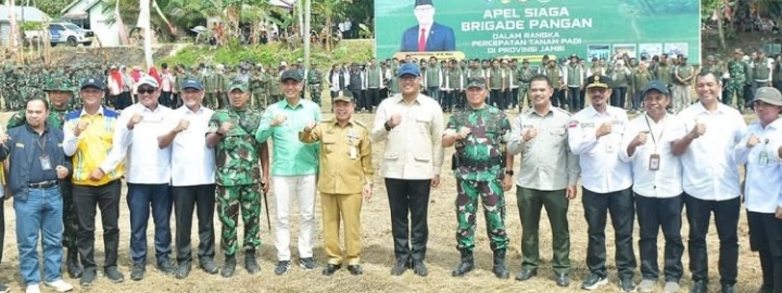 Apel Siaga Brigade Pangan di ikuti ratusan Brigade Pangan dari unsur TNI, Penyuluh Lapangan, Kelompok tani dan Petani. Herman Perwira Penghubung (Pabung) Kodim Jambi 0415 sebagai Komandan Apel.