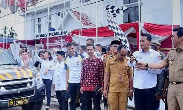 BATANGHARI, SJBNEWS.CO.ID - Bupati Batanghari Muhammad Fadhil Arief menghadiri acara pelepasan distribusi logistik pemilu serentak Tahun 2024 di Kabupaten Batanghari yang akan Distribusi ke 8 Kecamatan yang ada di kabupaten Batanghari.Acara ini di depan kantor KPU, Senin (12/02/2024).