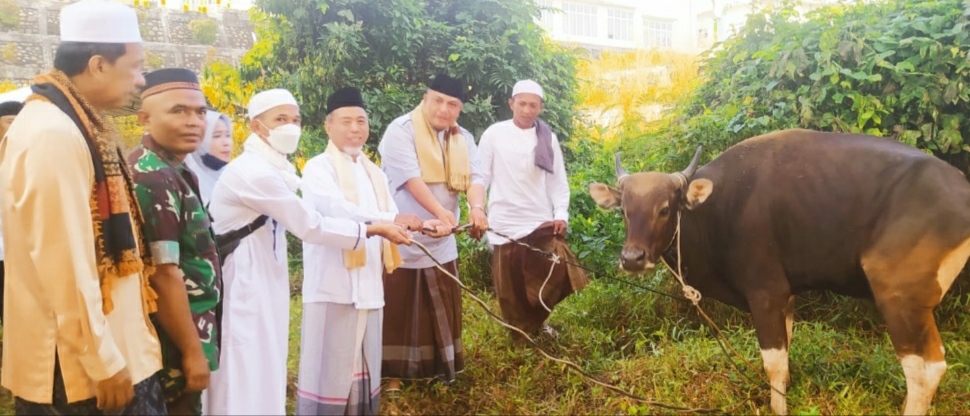 ‘’Setelah disembelih, dua ekor sapi ini nanti dagingnya dibagi-bagikan kepada warga yang berdomisili di sekitar Masjid Baitul Makmur. Terimakasih Pak Ketua Dewan atas sinerginya sehingga program kurban ini belangsung lancer,’’terang Bupati.