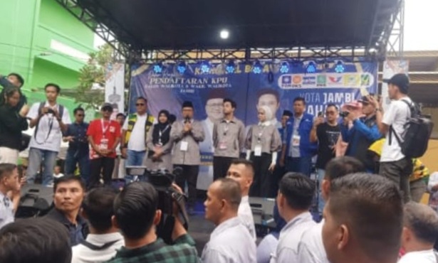 Arakan ke KPU mulai sedikit terhambat dengan membaur nya ratusan bahkan ribuan masyarakat yang bersimpati kepada Maulana Diza untuk memimpin kota jambi 5 thn kedepan.