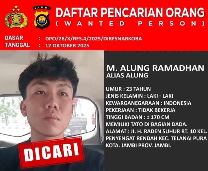 JAMBI, SJBNEWS.ID - Setelah enam bulan kabur dari ruang penyidik Polda Jambi, M. Alung Ramadhan alias Alung, tersangka kasus 58 kilogram sabu, masih belum tertangkap.