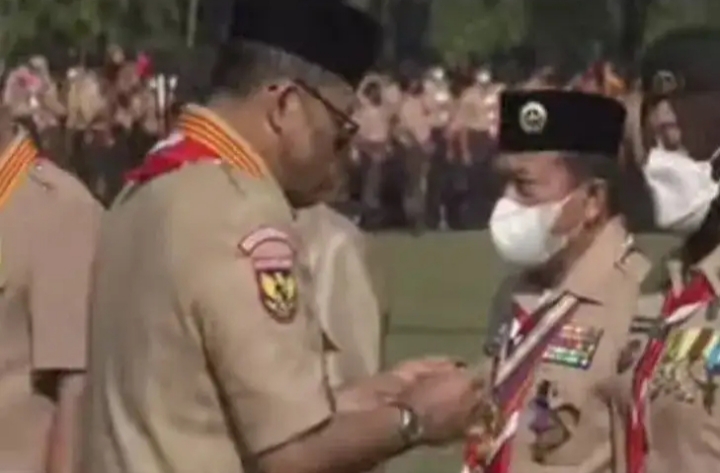 Penyematan tanda penghargaan itu dilakukan langsung oleh Ketua Kwartir Nasional Komjen Pol (Purn) Budi Waseso yang bertindak sebagai pembina upacara pada kegiatan peringatan nasional itu.
