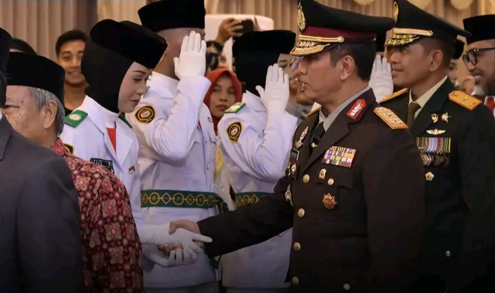 JAMBI, SJBNEWS.CO.ID - Kapolda Jambi Irjen Pol. Rusdi Hartono bersama unsur Forkopimda Provinsi Jambi menghadiri pengukuhan pasukan pengibar bendera pusaka (paskibraka) tingkat Provinsi Jambi tahun 2024 bertempat di Auditorium Rumah Dinas Gubernur Jambi, Kamis (15/08/2024).