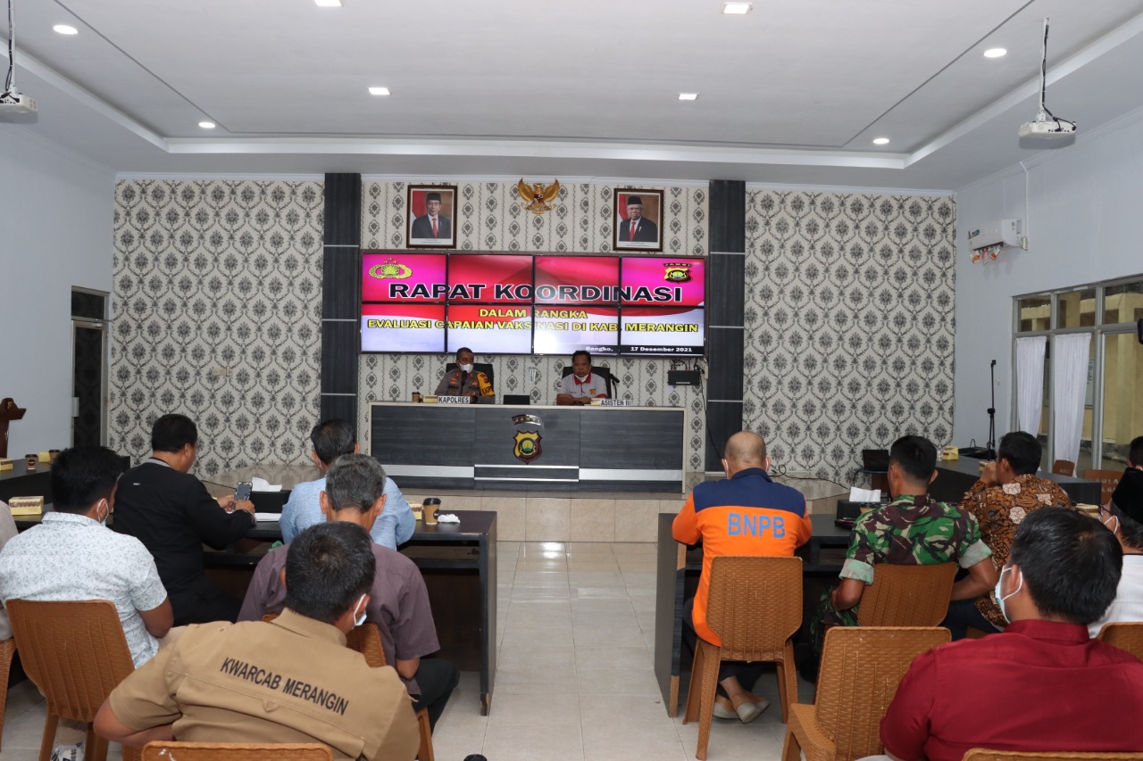 Merangin.Sjbnews.co.id -Guna untuk mengevaluasi pencapaian vaksinasi di Kabupaten Merangin, Tim Gugus tugas covid -19 Merangin lakukan rapat koordinasi di Mapolres Merangin pada Jum'at 17-12-2021.