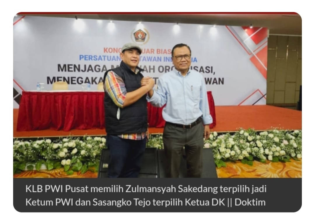 JAKARTA, SJBNEWS.CO.ID - Zulmansyah Sekedang secara resmi terpilih jadi Ketua Umum PWI Persatuan Wartawan Indonesia, periode 2023-2028. Pemilihan itu melalui Kongres Luar Biasa PWI di Hotel Grand Paragon Jakarta, Minggu (18/8/2024).