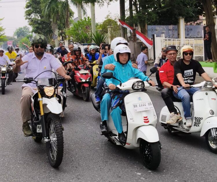 Keduanya Tiba Dikantor KPU Provinsi Jambi Dengan Menggunakan Sepeda Motor Serta Diiringi Pendukung Yang Membajiri Lokasi Dan Partai Pengusung. Keduanya Tampak Kompak Dengan Memakai Baju Senada, Teluk Belango Biru.