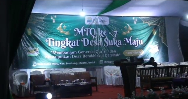 MUARO JAMBI, SJBNEWS.CO.ID - Guna Mendukung Mewujudkan Generasi Yang Qur'ani, Desa Suka Maju, Kabupaten Muaro Jambi Menggelar Mtq Ke-7 Tingkat Desa. Kegiatan Mtq Ini, Digelar Dilapangan Sepak Bola Bajaw, Di Desa Suka Maju, Kecamatan Mestong, Kabupaten Muaro Jambi. Pada Minggu (29/09/2024) Malam. Yang Diikuti Antusias Ribuan Masyarakat.