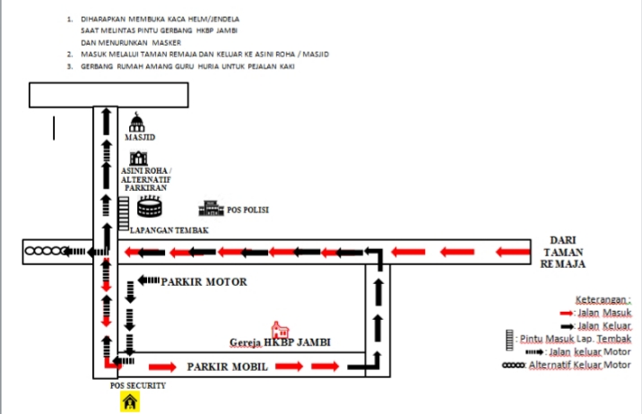 1. Rekayasa lalu lintas menuju dan keluar komplek gereja di kotabaru masuk kendaraan hanya diperbolehkan dari depan Taman Arena Remaja menuju ke Jalan Kapten Sujono /komplek gereja.