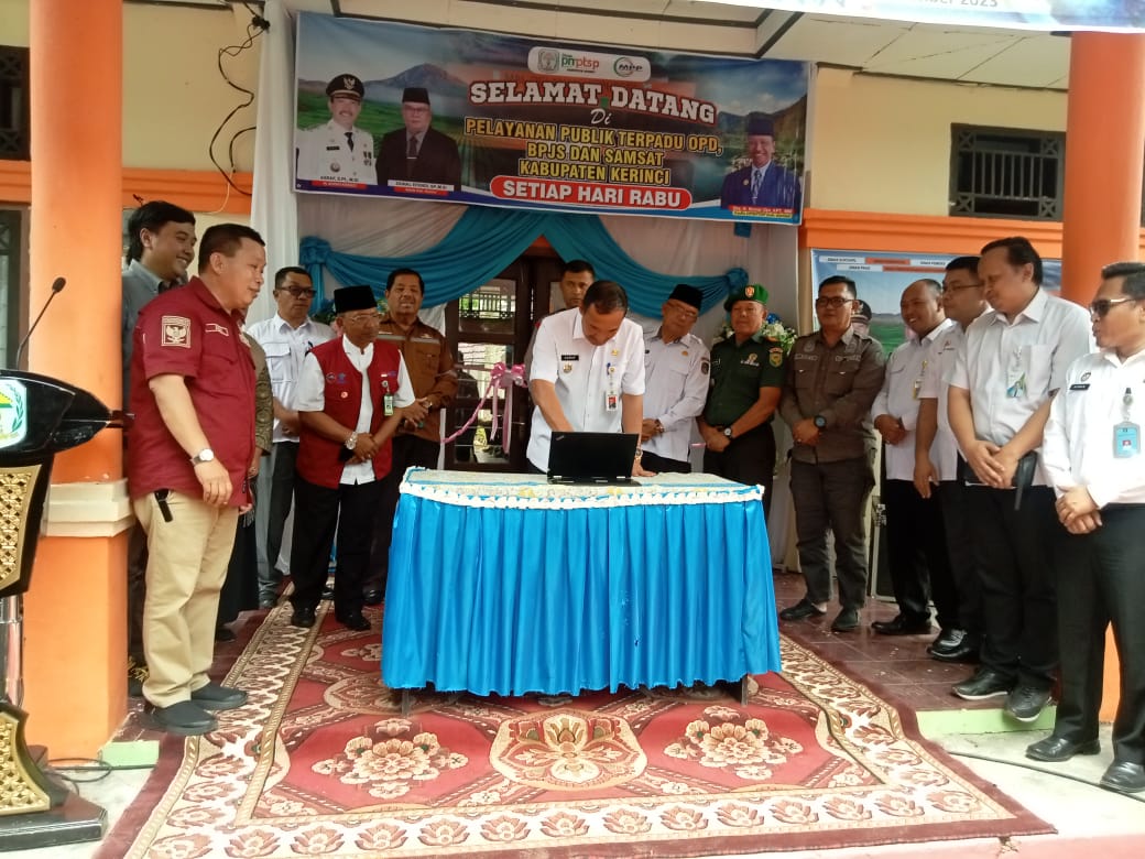 Pelaksanaan Launching pelayanan Publik ini, di hadiri oleh unsur Forkopimda Kerinci dan seluruh Kepala Opd, BPJS Kesehatan, BPJS tenaga Kerja, Dinas Dukcapil, Dinas Pemdes, Dinas Sosial, Dinas Koperasi Tenaga Kerja, BPKPD, Dinas Perpustakaan, Samsat, Bank Jambi, Imigrasi, para camat dari kecamatan air hangat timur sampai ke kecamatan Batang Merangin, Sejumlah delapan kecamat bagian hilir, juga hadir seluruh kepala Desa dari Delapan Kecamatan.