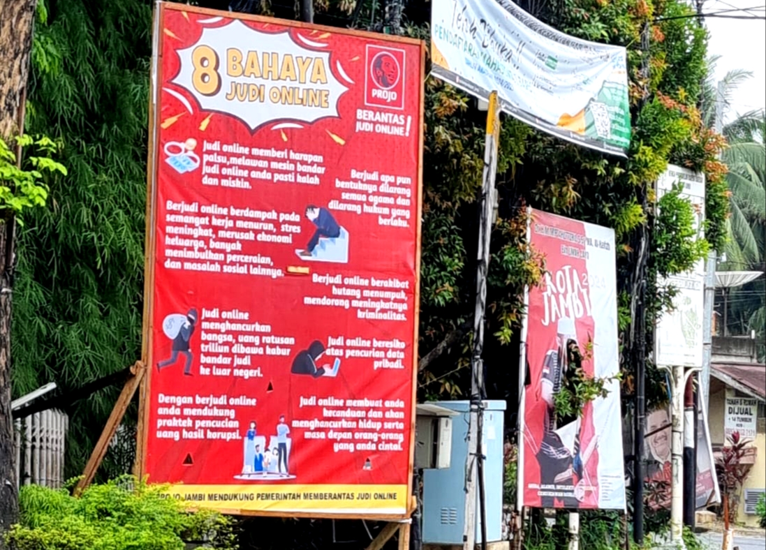 Terkait hal tersebut, Projo Jambi juga telah memasang puluhan baleho sosialisasi kepada masyarakat tentang dampak dan bahaya dari judi online di tempat-tempat strategis di Kota Jambi. (grs)
