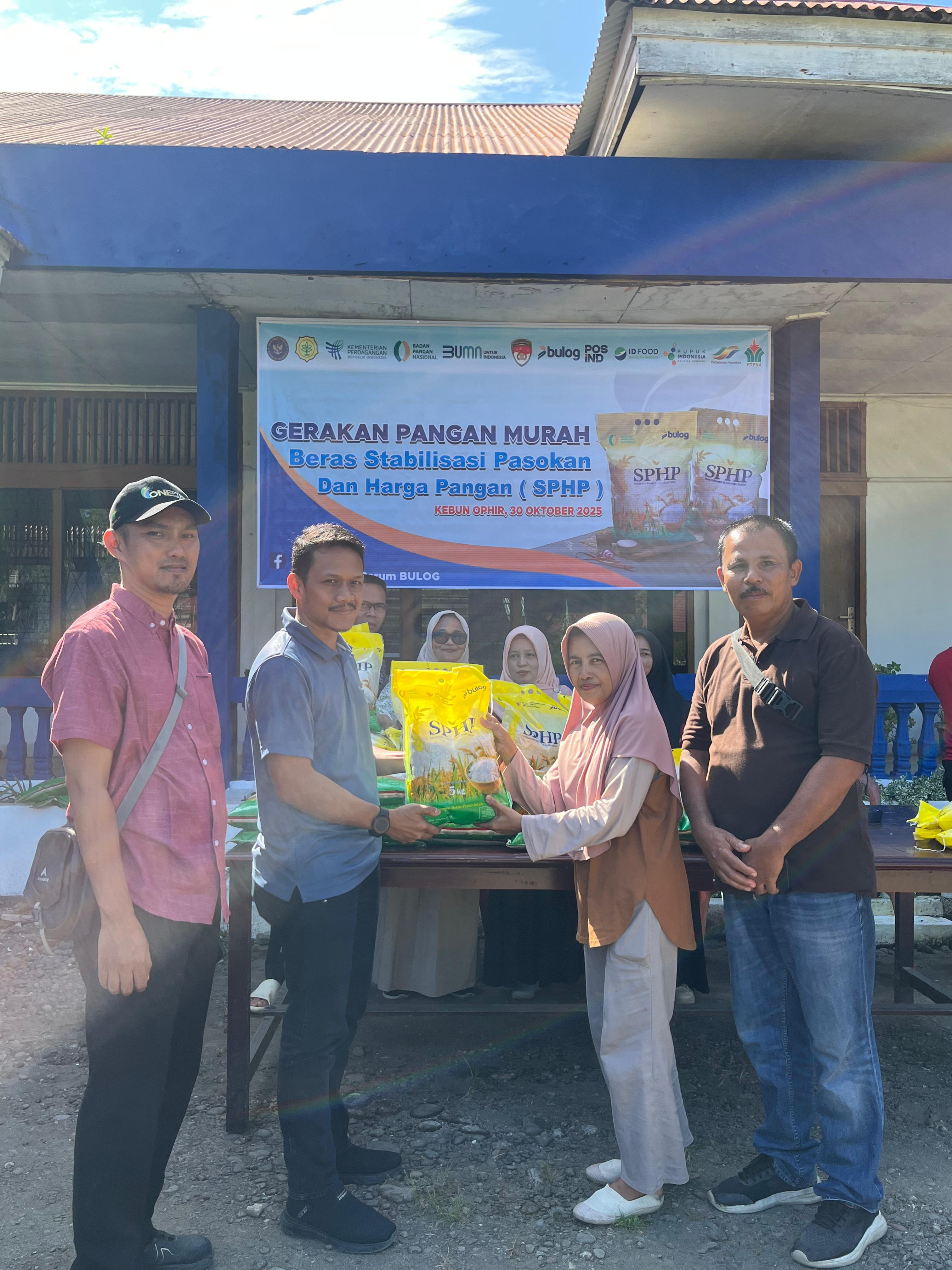 Gerakan Pangan Murah (GPM) dengan menjual beras merek Stabilisasi Pasokan dan Harga Murah (SPHP) ini, digelar di wilayah operasional PTPN IV Regional 4 yakni Kebun Pangkalan 50 Kota (PLK) kabupaten Pangkalan 50 Kota dan Kebun Ophir Kabupaten Pasaman Barat, Sumbar pada Senin (27/10/2025). Satu karung beras SPHP ukuran 5 kilogram dijual seharga Rp 60.000,- jauh di bawah harga pasar yang dijual lebih dari Rp 70.000,-.