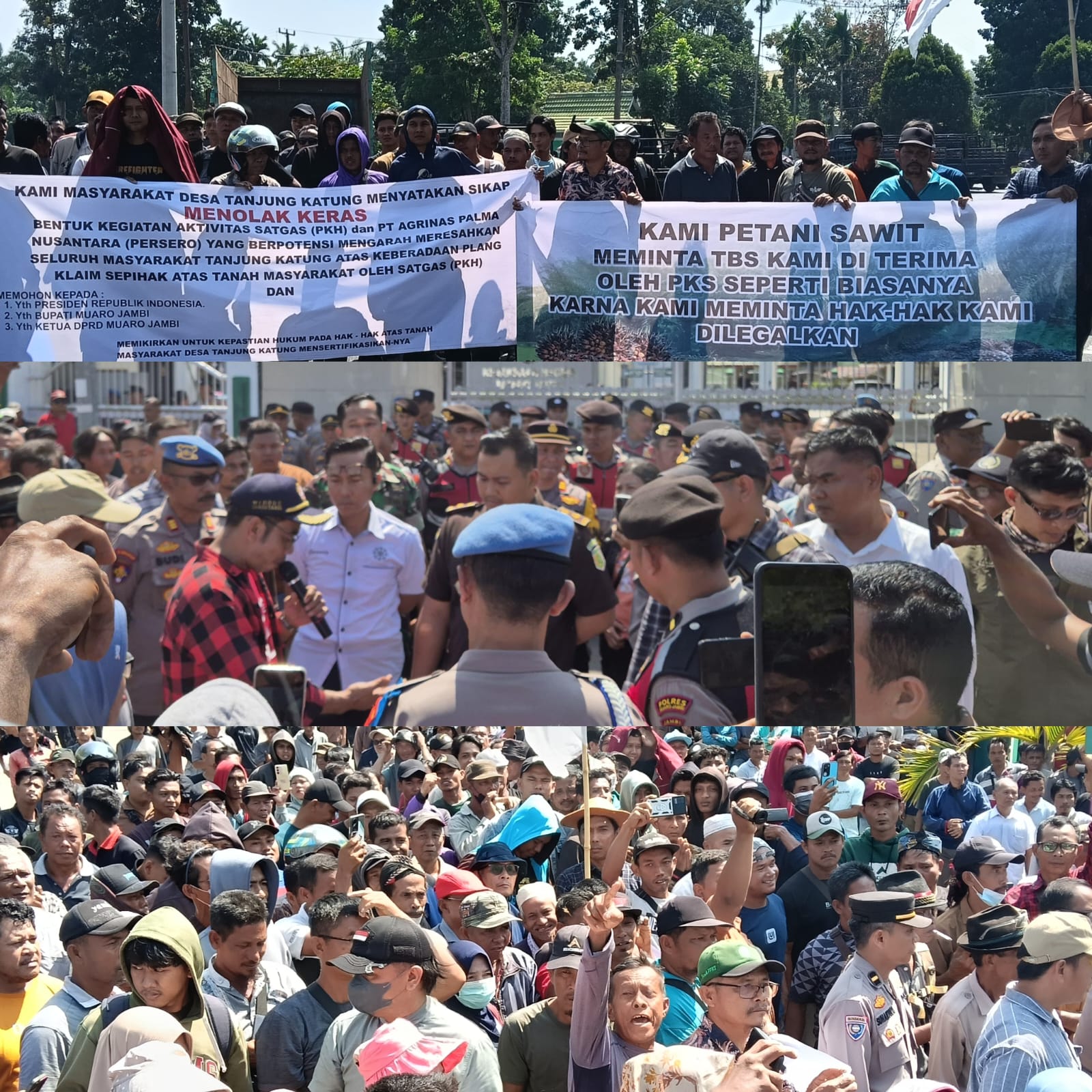 MUARO JAMBI, SJBNEWS.CO.ID - Ribuan Masyarakat (Petani) Muaro Jambi bersama Laskar merah putih perjuangan cabang Muaro Jambi melakukan aksi demo di depan kantor DPRD kabupaten Muaro Jambi.Aksi ini meminta agar DPRD Muaro Jambi segera membentuk Tim Gabungan Pencari Fakta (TGPF).