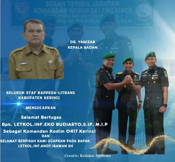 Seluruh Staf BAPPEDA-LITBANG Kabupaten Kerinci Ucapkan Selamat Datang Dan Bertugas Bpk. LETKOL.INF.EKO BUDIARTO, S.IP, M.I.P
