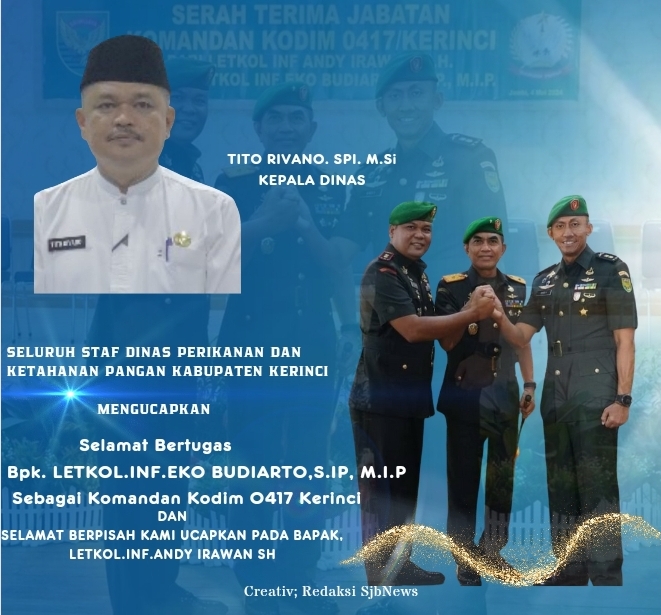 Seluruh Staf Dinas Perikanan Dan Ketahanan Pangan Kabupaten Kerinci Ucapkan Selamat Datang Dan Bertugas Bpk. LETKOL.INF.EKO BUDIARTO, S.IP, M.I.P