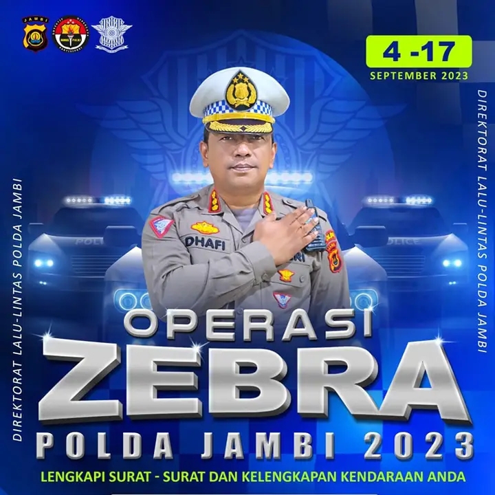 JAMBI. SJBNEWS.CO.ID- Polda Jambi dan Jajaran akan melaksanakan Operasi Zebra Siginjai 2023 selama 14 hari terhitung mulai tanggal 4 sampai dengan 17 September 2023.