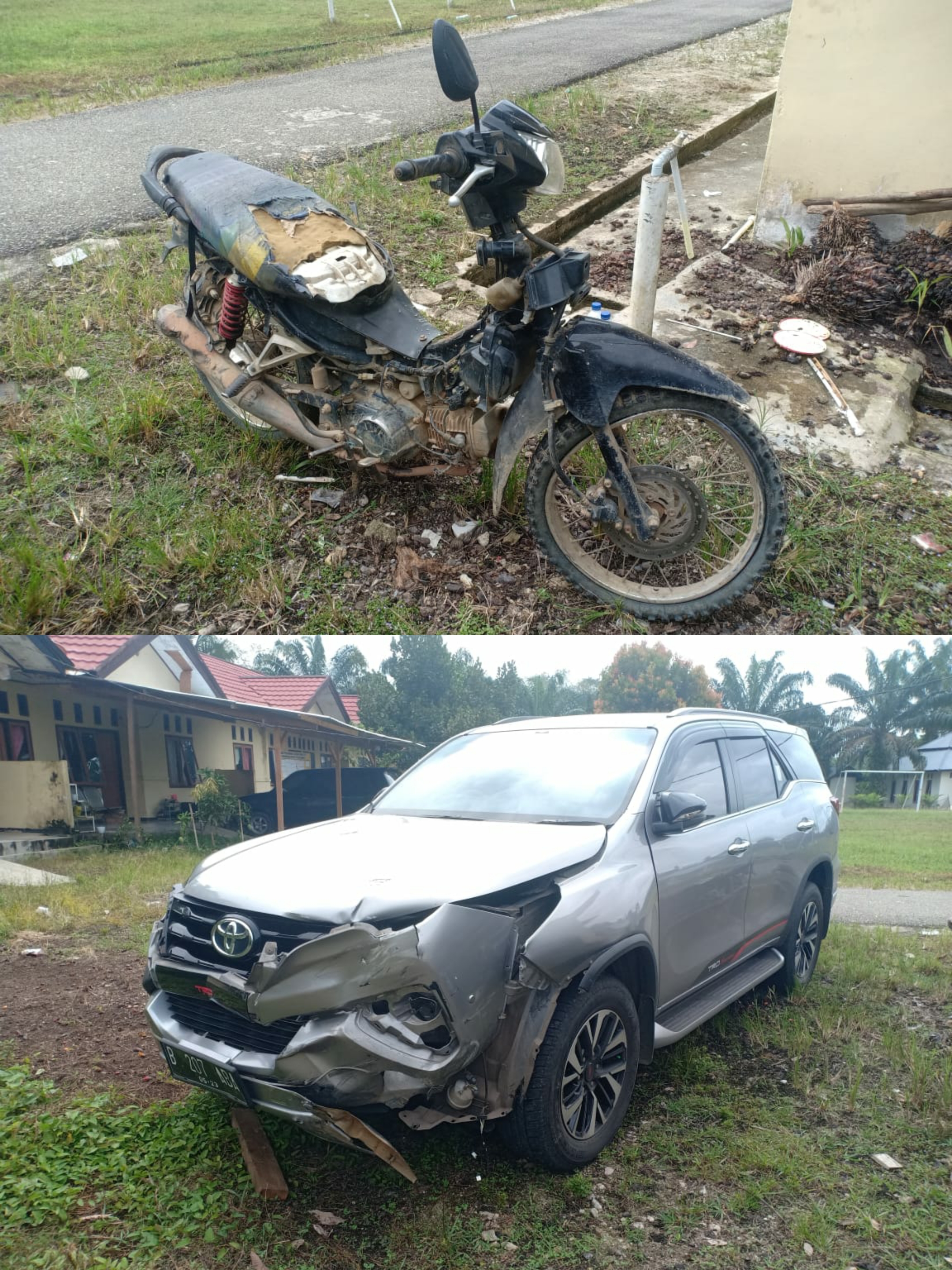 Kejadian tragis ini bermula di saat kendaraan Fortuner bernomor Polisi B 207 ABA yang di kemudikan Ahmad Nazori melaju dari Arah Bangko menuju Muara Bungo, dalam keadaan melaju pas depan kantor Camat Palepat, kendaraan yang berpenumpang empat orang tersebut menabrak sebuah sepeda motor jenis Honda Revo yang dikendarai Usin Manalu (60) yang kebetulan sedang berada didepan yang sedang melaju satu arah.