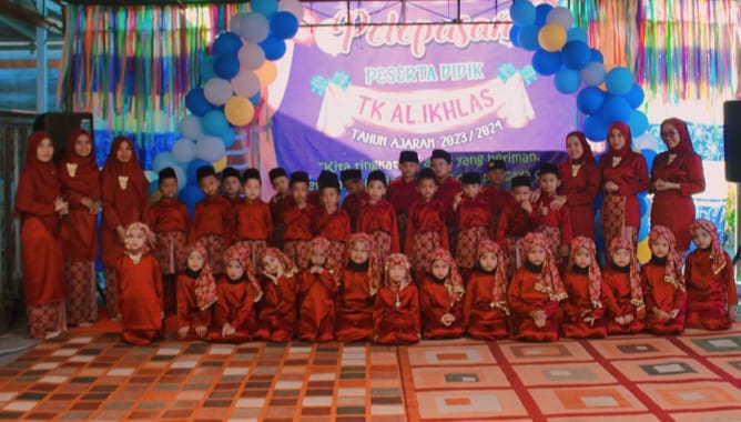 Untuk diketahui TK Al-ikhlas melepas peserta didik sebanyak 32 Orang Tahun Pelajaran 2023-2024. Acara Perpisahan ini siswa-siswi TK ini berlangsung sangat meriah dengan penampilan membaca surah-surah pendek, Musikalisasi lagu dari siswa-siswi, dan Tari Daerah kolaborasi bunda dan orang tua murid, yang di gelar di halaman Gedung TK. (Stwn)