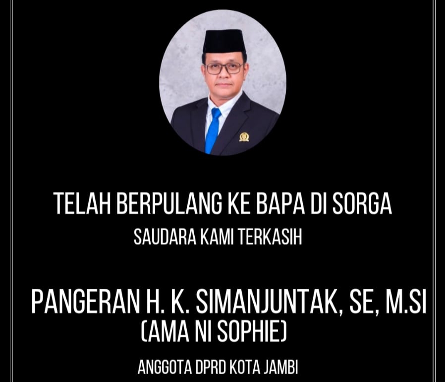 JAMBI, SJBNEWS.CO.ID - Dunia politik Jambi berduka. Anggota DPRD Kota Jambi, Pangeran HK Simanjuntak, S.E., M.Si., wafat pada Selasa malam di Jakarta.